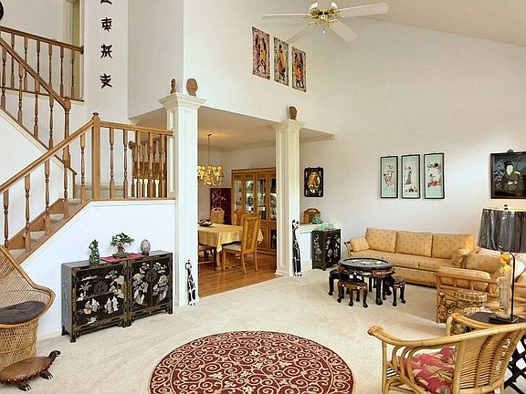 FABULOUS FLOORPLAN with Phenomenal Pond views! Delightful 4 BDR/3.5 BA Basement home w/3184sf features Formal Living w/soaring ceilings; Formal Dining; large Kitchen & Breakfast area; Family Room w/masonry fireplace; & spacious Master Retreat w/french doors to Office. Bonus, BDR & BA, Kitchenette & Workshop in Walkout Basement. Deck & Patio overlook Pond & gorgeous, wooded backyard. NEW HVAC! NEW CARPET! Great Swim/Tennis Community!