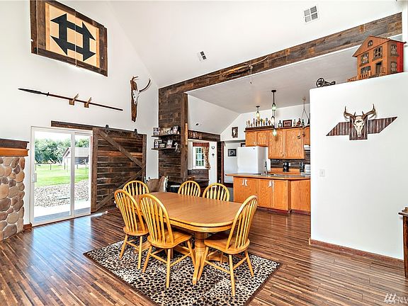 Perfect combination of modern farmhouse, manicured 1.49 irrigated acres & large shop! This 2325 SF home has impressive vaulted ceilings, local barnwood walls & barn door accents! Open floor plan has kitchen w/island & barn wood breakfast nook! Split bedrooms layout. A full remodeled bath is ensuite to one of the spare rooms (2nd master). Vaulted Master w/5 piece bath (soaking tub!) & walk in closet! The shop is 24 X 45 w/14ft door, heated w/220 outlets. Fully fenced w/sprinkler sys, fruit trees