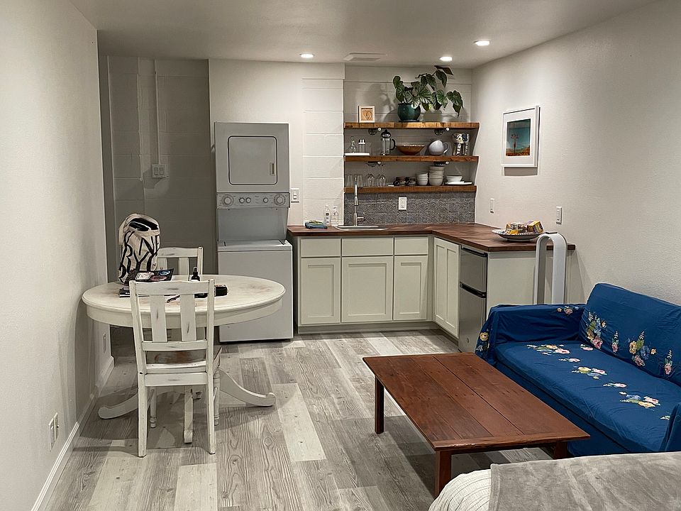 The ground-level studio is newly remodeled with a separate entrance and lots of natural light. Quiet property on five acres in oak and manzanita woods. 15 minutes/8 miles to the hospital. Best for one person or a couple. The kitchen is small: small fridge, portable induction cooktop, air fryer/toaster oven, microwave. Full bathroom with tub and shower. Mini-split for heat and air. Stackable washer/dryer. Convenient parking at entrance under deck. Pets are allowed on a case-by-case basis, there is no fencing for pets. You can choose to have the studio partially furnished or not. All utilities are included. The owner pays for water, garbage, electricity, and internet. There is no smoking inside. Qualified applicants have credit scores above 670, a clear rental history and background check, and a combined gross monthly income of $2400. The studio is on its own level of a family home. There is a sitting area with a view beside the studio, but the other outdoor areas are private to the owner. Please don't apply if you do not meet the qualifications above.