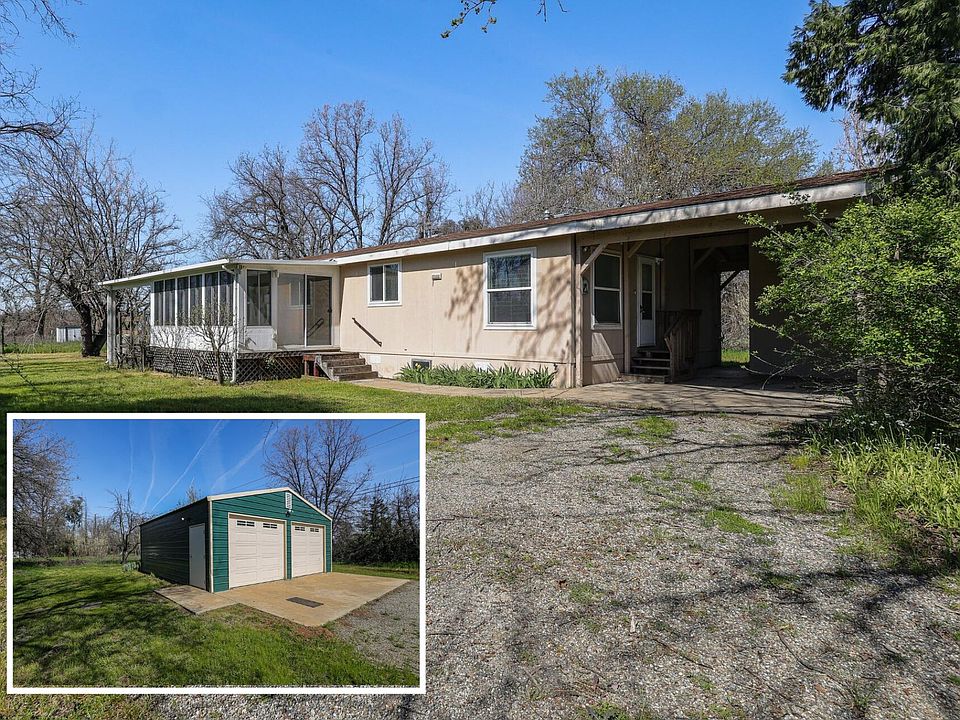Embrace country living on this 2-acre property located within ACID, featuring a spacious detached 2-bay shop. This home offers 3 bedrooms plus an office and 2 baths with a bright open floor plan and vaulted ceilings. The large galley-style kitchen with ample storage flows into the adjoining dining area. Retreat to the primary bedroom with ensuite bath boasting a separate soaking tub and shower. Recent updated include the well pump and kitchen floors. Enjoy entertaining in the enclosed porch, surrounded by mature trees and lush pasture space. Boat/RV parking and multiple storage sheds create the perfect setting for rural living.