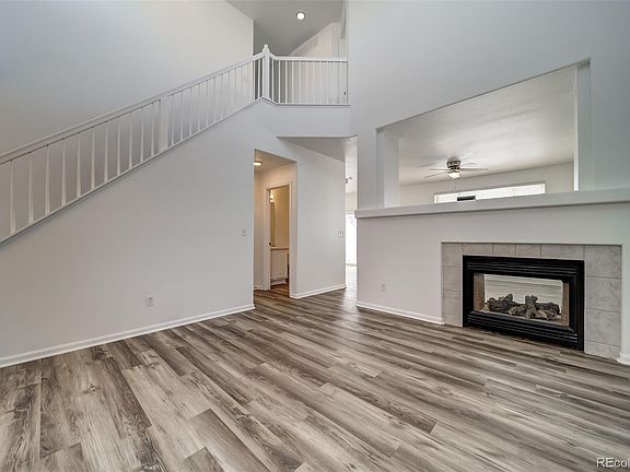 Step inside the front door to see this beautifully refreshed Saddle Rock Ridge home that could be yours. The interior walls and cabinets have been completely repainted, along with new Luxury Vinyl Plank flooring, carpet, sinks, faucets, door hardware and lighting fixtures. This open plan has a living room with a 2 story ceiling and double fireplace. The adjoining family room shares the fireplace and has surround sound speakers installed for your listening pleasure. Large windows in the front and rear of the house let in the daylight and a mountain view to the west. The eat-in kitchen has brand new stainless steel appliances and a sliding glass door that opens to a large deck with maintenance free decking to enjoy the sunsets and mountain view. Upstairs there is a beautiful primary bedroom suite with a full bath and walk-in closet. There are also 3 additional bedrooms with new ceiling fans and another full bath and linen closet. Walk downstairs to a full unfinished walkout basement ready to finish by adding bedrooms, bonus space, home office, gym or whatever you want that will increase the value of this home. This home backs up to open space with a paved trail to use for walking the dog, riding your bike or going for a run. Located in the highly sought after Cherry Creek School District this home is within walking distance to the elementary, middle and high school campuses. BONUS! This home is located in unincorporated Arapahoe County. Save money on sales tax when purchasing expensive items like a car or delivered items as you will only pay the state tax when disclosed. A 1 year home warranty is included with the home. Close to shopping, restaurants, and movie theaters located at Southlands Mall. Aurora, and Quincy Reservoirs are just up the road along with Lookout Pool and the brand new Aurora Southeast Recreation Center and Fieldhouse. Easy access to E470 makes for a short commute to Buckley Space Force Base and DIA. Welcome Home!