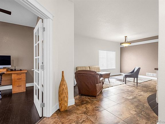 Don't miss your chance to own this beautiful ranch style home in the highly sought after Canterberry Crossing neighborhood in Parker. This beauty boasts 3 bedrooms plus an office and 2 bathrooms. 1,894 sqft of updated living space on the main plus an additional 1,247 of unfinished basement with stub ups ready for whatever you wish. The primary bedroom is a true retreat with vaulted ceilings, ceiling fan, updated bath with double sinks, steam shower, double shower heads with custom bench, walk-in closet plus a linen closet! Brand new furnace installed Feb 2025! Updated features throughout the home include newer flooring throughout, carpet in bedrooms, taller baseboards, door casings, all hardware has been replaced, custom kitchen countertop and backsplash! All stainless-steel kitchen appliances have barely been used and included in the sale. Solid home ready to go! The open floor plan seamlessly connects the living areas, creating a welcoming atmosphere for gatherings and everyday living. Convenient Parker location just steps to Deer Tail Park & miles of trails. Only minutes to Mainstreet/Downtown Parker, Public library, Parker Town Pool & farmer’s market plus ample dining & shopping. True main floor living – don’t miss out!