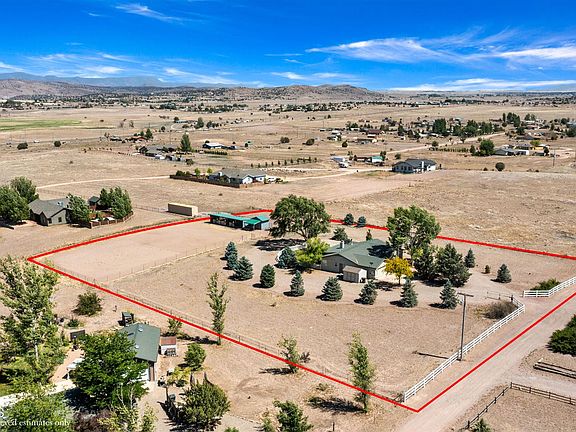 Perfect Horse Property in a quiet location on a slight knoll with views in all directions. 29 Irrigated trees; 4-stall covered horse barn; no climb horse fence; tack room; water and electricity to the barn. Almost 2.5 acres of fenced land. Large covered rear patio with irrigated lawn and PVC picket fence. Lots of extras with this one; well taken care of. And, the tuff shed with the 2WD ATV conveys with the property.