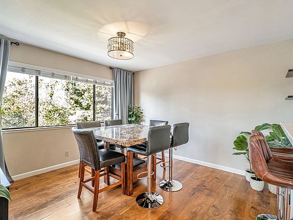 Beautiful condo located in prime North Hayward location. Large garage with up to 3 tandem parking spots included with rent. Tons of storage space. With nearly 1500 sq ft of living space, this single level condo offers 3 spacious bedrooms, 2 full bathrooms and in unit washer and dryer. Corner location offers tons of light light, privacy and views. Recently replaced carpet & paint with designer touches throughout. Updated kitchen features new quartz counters, stainless steel appliances and a breakfast bar. Large dining room will fit most any dining set plus buffet and more. Large living room a sliding glass door with views of trees that leads to a balcony. Generously sized primary suite with walk in custom closet & en-suite bathroom with two vanity areas and a stall shower. Two more spacious bedrooms, hall bathroom with shower over tub. Detached garage with up to 3 car parking included plus 2 storage areas available for add'l fee. Water & trash included in rent. Great community with a club house, small gym, pool and spa. Awesome location just one block to Safeway, Starbucks, City Sport gym, close to downtown Hayward. Quick freeway access, close to I-880, I-580, I-238 and a short distance to Castro Valley BART. Available for move in early November, 1 year lease minimum, pets upon approval. Water & trash included with rent, one year lease minimum.
