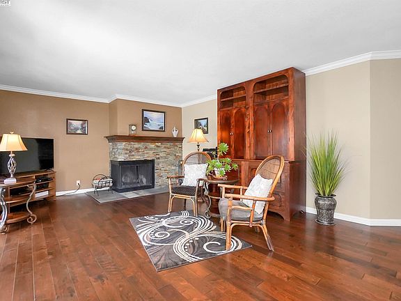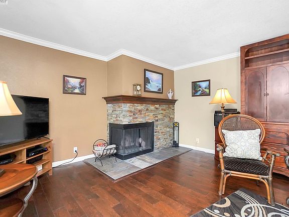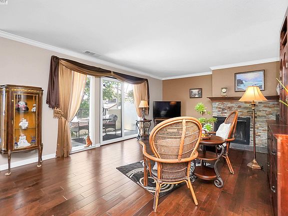 Beautiful condo located in prime Hayward location! With almost 1200 sq ft of living space, this single level condo offers 2 spacious bedrooms, 2 full bathrooms and washer and dryer hookups in the hallways. Gorgeous engineered hardwood flooring throughout and crown molding. The kitchen has updated cherry wood cabinets, granite countertops, recessed lighting and a breakfast bar. The spacious livingroom has a beautiful corner tiled fireplace and a sliding glass door that leads to your patio. The generously sized primary suite has recessed lighting, updated en-suite bathroom with tons of cabinet space, walk-in closet and walk-in shower! The guest bathroom has been tastefully updated as well. In additional to the beautiful condo, you have a tandem single car garage, access to the club house, pool and spa! Walking distance ro safeway, starbucks, the new city sport gym, downtown Hayward and minutes from HWY 580/280.