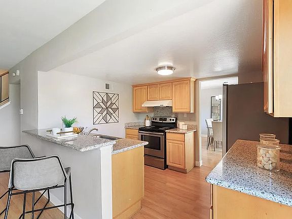 Beautifully updated bright 2-story end-unit condo like a townhouse. Overlooking greenbelt and with beautiful view, it has one of the best locations in the complex with a private front patio. Spacious 3BR/2.5BA w/ master suite w/ walk-in closet. Large separate living & family RM with aesthetic views including from rear bedrooms. Gorgeous upgrades: elegant open kitchen w/ granite countertops & stainless steel appliances; remodeled BA w/ granite countertops & tile floor; laminate floor throughout; large dual-pane windows & sliding doors and new baseboards throughout; newly painted interior. 2 car parking spots in gated garage. Conveniently located in the heart of Foster City & steps away from award winning Brewer Island Elem, City Hall, Library, Rec Center, PJCC w/ top notch gym & classes, shopping and parks. Major employers nearby include Gilead, Visa, Sony, EA & Oracle. Quick access to Hwy 92, 101, 280, and 880. Security deposit equal to 1 month rent due at signing. 12 month minimum lease term. Water and gas included, only electricity and internet needs to be paid (Internet is $55/month if want to be included with wifi + router systems)