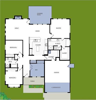 At 2046 square feet, the Snowbrush is an efficiently-designed, oversized single level home offering both space and comfort. The open kitchen is a chef's dream, with a large island, plenty of cupboard storage and counter space. The expansive living room and adjoining dining area complete this eating and entertainment space, with the added appeal of a covered patio area off of the great room. The spacious and private master suite boasts a dual vanity bathroom with extra counter space, separate shower and soaking tub, plus an enormous closet. The other three sizable bedrooms - one of which can be converted into a den or office - share a second bathroom with a dual vanity.