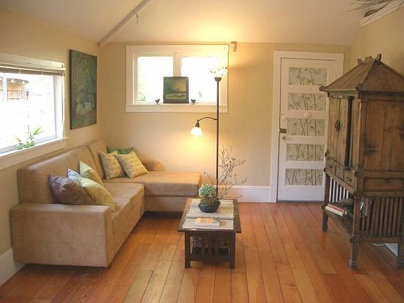 Amble down a path, through a garden gate and you will be welcomed by hummingbirds, butterflies, and a variety a plantings that attract the like. This one bedroom cottage/condo offers original fir floors, vaulted open beam ceilings and a large farmhouse style kitchen. The bathroom has had recent updates and includes the hookups for the laundry. Adjacent to the living room is a plus room that offers a multitude of living options. A cozy bedroom with pretty windows and fir floors is the perfect place to rest. The outdoor space includes a private deck, side and year yard and a flagstone patio. The Cottage is ideally situated in the Berkeley Bowl neighborhood close to UC Berkeley, Ashby BART and College Avenue shops. This Cottage is part of a condo conversion in 2006 that is comprised of one other Brown shingle home that is located at the street. The two homes are separated by a private fence and gate. All utilities are separate with the exception of the water, which is split one-third by the Cottage. A new roof was installed in 2008. The HOA dues for the Cottage are $22.00 per month. There is one annual homeowners meeting per year. This is a perfect home for those that are seeking a manageable space, filled with charm and character and located in a fabulous neighborhood of Berkeley.