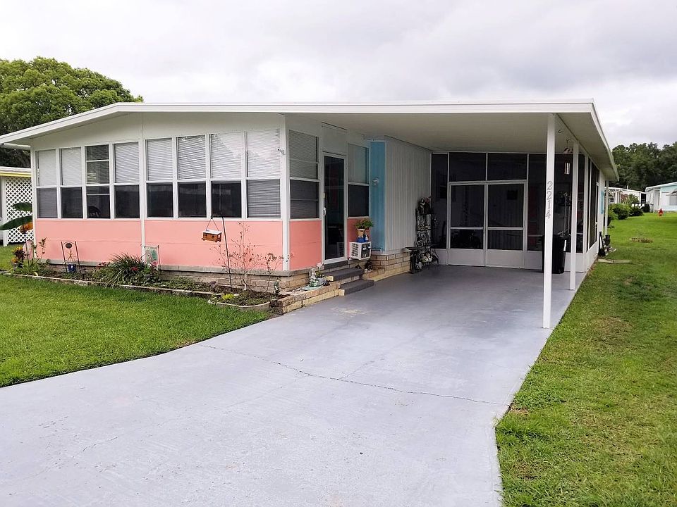 ALL NEW ROOF, FLOORS, HVAC AND ELECTRIC PANEL!!! Move right in to this 2 bedroom, 2 bath home! It needs nothing for years to come! It's all been done for you. New roof two years ago, electric panel replaced one year ago, new vinyl plank floors this year and new HVAC unit last month. Cute as can be. Exterior in old Florida colors and interior in modern tones. Everything is in excellent condition here. Offers a screen room at the carport and a Florida room on front with glass, slider windows for year round comfort. Located near the center of the community within close walking distance to outdoor pool, bingo and more! The perfect Florida home awaits you right here. Don't let it get away. Seller is motivated. Located in the age qualified community of Clover Leaf Farms.