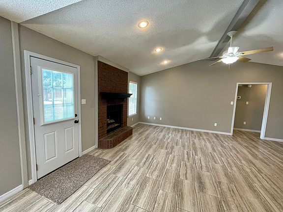 3/2 cul-de-sac home on large privacy fenced lot. Everything in home is recently updated and clean. Vaulted ceiling in LR with gas log fireplace. 2 car garage with loads of storage and easy walking to Westwood Elementary School and Walmart. Easy access to HWY 71. Tenant responsible for all utilities and yard work. 2 yr lease required. NO smoking. $1000 deposit, First AND last month's rent, and any pet fees required at move in. Available NOW.