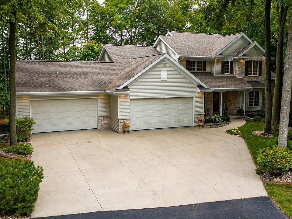 Totally updated custom 1 owner developers own home. Large wooded cul-de-sac lot. Adjacent wooded lot to west IS STILL available for $84,900. Foyer/office/hall w/real hard wood flooring. Dream kitchen/maple cabinets/granite counters center island/wine bar/rack/refrig. 1st floor master retreat/trey/door to patio/hottub. Luxury master bath/whirlpool/oversized shower. Stunning great room/vaulted ceiling/pillars/stereo surround/custom built carved maple/marble fp. 4 car garage plastered/polyurea floor. LL rec room has no finished ceiling. Totally updated! Phenomenal.