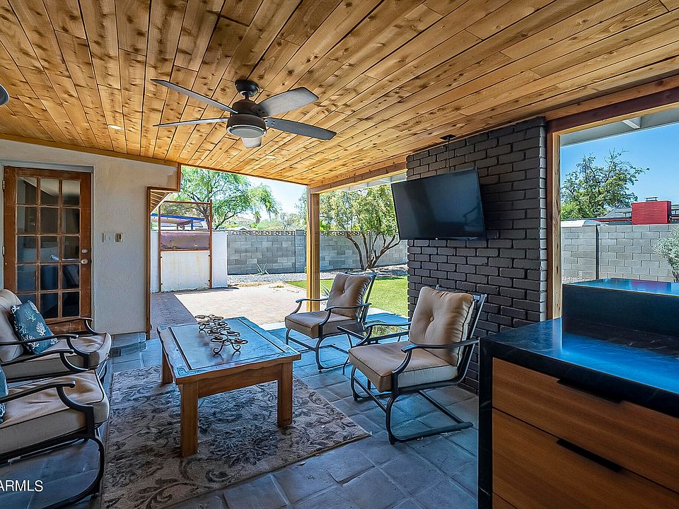 Nestled in-between Lookout and Phoenix Mountain Preserves, this adorable home has it all! The front room has built in shelving and bench seating, great for a dining area or reading room. The family room has a cozy fireplace and large windows with lots of natural light and opens to the remodeled kitchen. You'll love the granite counters and passthrough window that opens to the covered patio and outdoor dining/entertainment space. The backyard is low maintenance and has a large, insulated shed with electric. The primary bedroom has an ensuite bathroom and the two other bedrooms share the second bathroom. In addition to the main HVAC system, there is a ducted, zoned mini split for more efficiency and comfort all year. A short drive to the 51, 101 and I17 freeways, great location! Updates include gas in 2013, new roof in 2015, updated windows in 2016, bathrooms in 2017, kitchen and flooring remodel in 2018.