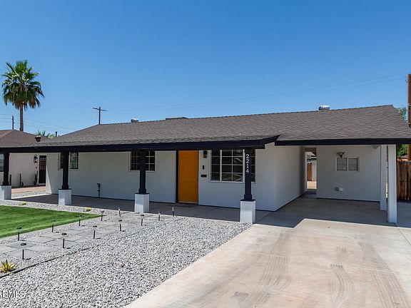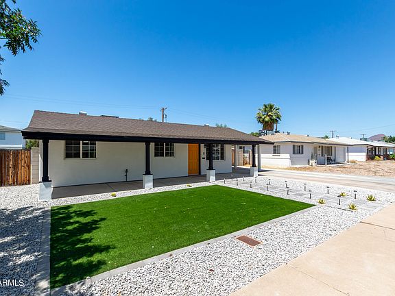 You don't want to miss this tastefully updated single-story home with no HOA! This beauty features an easy-care landscape, green lawn, carport parking, RV gate, extended driveway, & full-length front porch. Discover a welcoming open layout adorned with tall ceilings & soothing paint tones complemented by wood-style flooring. The immaculately designed kitchen boasts SS appliances, quartz counters, tile backsplash, recessed lighting, rich wood cabinetry, & a breakfast bar great for morning conversations. This gem includes three perfectly sized bedrooms with sliding door closets & a pristine full bathroom with a designer's tile shower/tub combo. A spacious AZ room with a walk-in closet is perfect for year-round entertainment! Host memorable get-togethers in the vast backyard! Move-in ready!