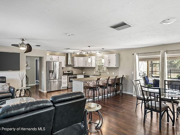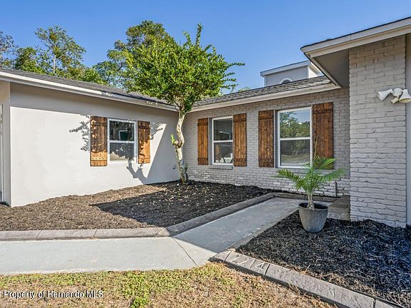 Completely updated 4 bedroom, 2 1/2 bath, pool & spa, wood-burning fireplace home on a 1/2 acre. No HOA or CDD. Attached 2 car garage, fenced in backyard and a finished 2 story she-shed/man-cave. RV parking with 50 amp electric/water and septic hookups. Split bedroom floor plan, with the 4th bedroom outside the owner's suite, use as an office, nursery, sitting area, anything you want, the kitchen is open to the great room. Absolutely huge owner's suite with a walk-in-closet and French doors leading to the pool area. The owner's bathroom features a separate water closet, jetted tub, walk-in-shower, double vanities, and a linen closet. A spiral staircase on the lanai leads to a rooftop sundeck. The kitchen features granite counters, breakfast bar and stainless-steel appliances. The oversized pool is 5ft all around making games and splashing around more enjoyable. Located just minutes from the Suncoast to the east and minutes to Weeki Wachee Springs to the west. This is a must-see home that will not disappoint. Call today and schedule your private showing.