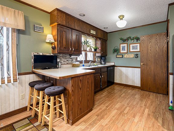 The backyard has a great, park-like feel to it. There's a covered patio space and built-in shed as well as a newly painted spacious deck off the back of the home. The garage is a very over-sized 2-stall with heat and garage cabinets included.