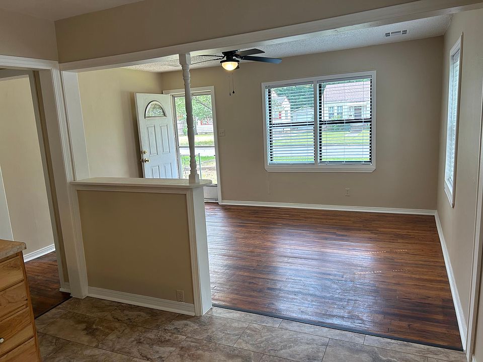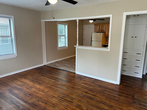 Freshly painted with new windows, roof, kitchen/bath floors and hardwood floors. Large fenced back yard. Refrigerator and stove included . Central heat and Air Renter responsible for all utilities. Dogs up to 25 pounds allowed with one time $500 pet fee. Renter responsible for lawn.