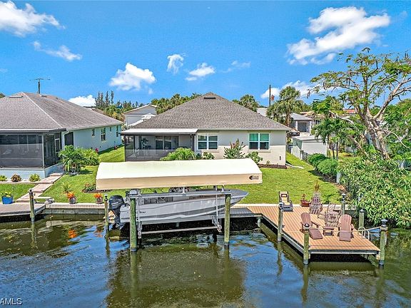 Welcome to the epitome of modern waterfront living! This newer construction home is a true gem, offering the perfect blend of luxury & functionality. Situated in a prime location with direct Gulf access, this property promises a lifestyle that dreams are made of. Step inside this remarkable 4-bedroom, 2-bathroom home, boasting over 2100 sqft of thoughtfully designed living space. Be greeted by an open & airy Great room, where 10-ft ceilings & 8-ft doors create an atmosphere of spaciousness & grandeur. The heart of the home is the generously sized center island kitchen, complete with a walk-in pantry. The Elegant Primary suite is a true sanctuary, featuring dual vanities, a separate tub & shower. Step outside onto the extended lanai, which is paved for easy maintenance & features super screens. Boating enthusiasts will appreciate the 10,000-pound boat lift with a canopy & Trex composite decking, providing convenient access to the Gulf of Mexico. Safety & security are paramount, as evidenced by the impact glass throughout the home, offering peace of mind during storms and hurricanes. The high elevation of the property ensured it remained "high and dry" during Hurricane Ian.