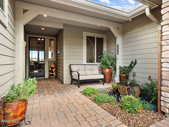 Located in the luxurious gated Hassayampa Village Community, this 3,264 sq ft home offers a true Prescott lifestyle just 10 minutes from downtown and freshly painted exterior! Live on one level with 3 bedrooms, plus an office, 3 baths, and a 3-car garage. The spacious great room opens to a deck with fireplace and views--ideal for morning coffee, sunset dining, and stargazing. Grab a book and enjoy the sophisticated ambiance of the front patio, where an organic water feature creates a serene and inviting atmosphere. The chef's kitchen features Viking appliances, including double ovens, refrigerator, microwave, and gas cooktop. A small bonus room off the living area is perfect as an additional workspace or future wine room. New paved steps, railing, and lighting provide easy access to a versatile lower-level bonus room for a gym, workshop, or hobby/game room. With hiking trails and Capital Canyon Club just around the corner, this home blends outdoor living; including hiking, biking, golf and social club activities all within the charm of Prescott.