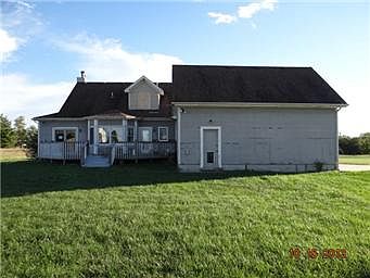 1.5 Story with wrap around porch and 2 car side entry garage, also has large outbuilding with Horse Facililties. Living room has fireplace, kitchen has bay window, center island, pantry. Room over garage access from Laundry room @ garage door. Master bedroom has whirlpool tub and walk in closet. 2nd level has 2 bedrooms and hall bathroom.