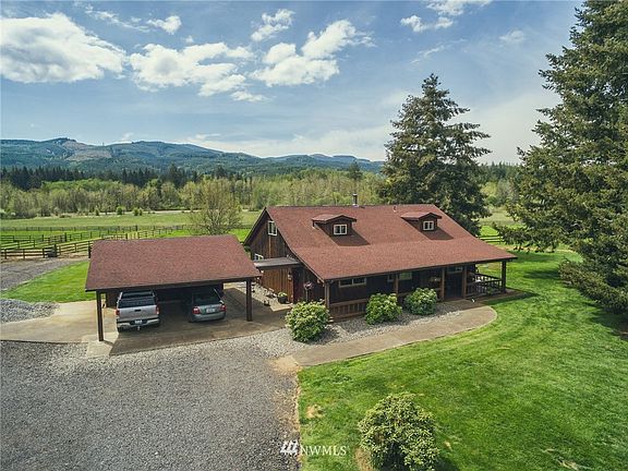 Country Living Paradise on 9.86 ac. kitchen w/granite counters, stainless appliances, tile floors. Living room has a free standing wood stove with beautiful views of Baw Faw and pastures. Mstr bath has a gorgeous walk-in tiled shower & soaker tub. Meticulously kept throughout! 50x65 barn w/attached 14x65 lean-to, 25x25 hay loft, 5 matted stalls w/lights & timers plus 3 additional stalls-all lined w/heavy rough sawn fir. Separate tack room. 25x25 shop. Round pen. Fenced & cross fenced & MORE!