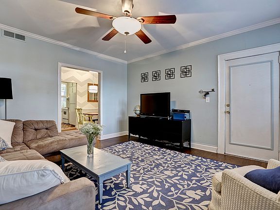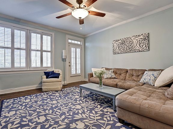 Lots of historic charm. Hardwoods throughout, detailed crown molding, lots of natural light. Upgraded plantation shutters on all windows and upgraded French doors. 9+ft ceilings, ceiling fans, original doors and glass hardware, screened in porch, secure building, AMPLE storage space compared to other units (2 large bedroom closets, hall closet, interior laundry with storage, bathroom closets, and communal storage in basement).