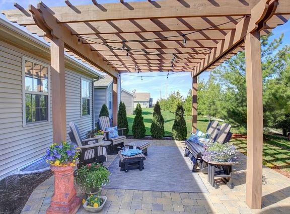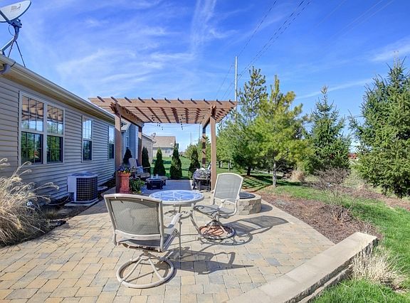 You will love this ranch style open floor plan home in desirable golf course neighborhood. It is very bright and sunny and includes many upgrades. The master suite has double vanities with a walk-in closet with occupancy sensing switch. The kitchen has an island, tiled backsplash, pullouts in cabinets, stainless appliances, overhead LED lighting, over cabinet LED accent lighting and under cabinet LED task lighting. There is hardwood and ceramic flooring throughout the main level, with vaulted ceilings in the living room and bedrooms. The finished basement includes a third bedroom, family room, office area, workout space, and storage room, in addition to a third bathroom with heated ceramic flooring and towel warmer (both on switched timers). The garage is insulated and has electric area heating, overhead LED lighting, motion-sensing egress lighting, epoxy floors, and a whole house fan. Outside large patio has a lighted pergola. Other upgrades include central vacuum and custom window tr