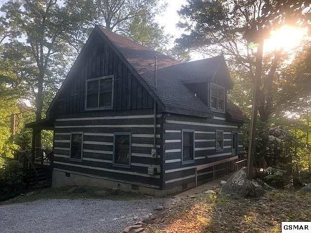 HARD TO FIND! CABIN NESTLED ON 3+ ACRES CONSISTING OF FOUR LOTS AND LAYS WELL! The cabin sits on it's own lot and is surrounded by the other lots to total the 3+ acres. The bordering lots are very nice and lay well! This is super hard to find in Sky Harbor, a desirable subdivision located between Pigeon Forge and Gatlinburg. This has been used as a permanent home for years, but is ready to add some personal touches and could also make an income producing property/overnight rental, second home, etc. The land lays well and provides total seclusion in a serene wooded setting with seasonal mountain views. Cabin is being sold fully furnished with the exception of a few items. Interior features include soaring vaulted ceilings, open kitchen and dining area, and a bedroom on the main level. Upstairs has an oversized loft area and second bedroom. Covered front porch with a swing for relaxing. Back deck has a picnic table for dining. Plenty of useable yard space for outdoor firepit, etc. This is a unique and hard to find property! Hurry before it's gone!
