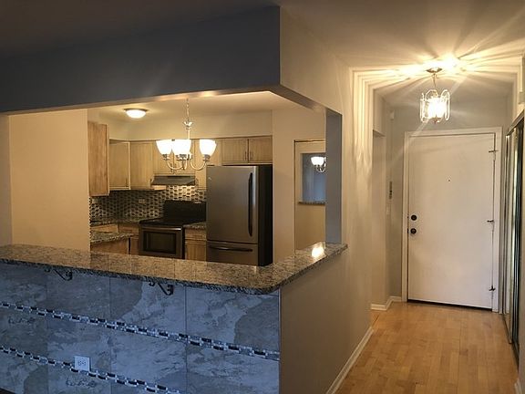 Lovely and sunny 2 bedroom ; 1 bath in the Evergreen Court Subdivision. 3rd floor condo ; gorgeous views with large balcony that includes 2 parking spots and storage space. Wood cabinetry, granite countertops, mosaic backsplash with stainless steel appliances. Tons of counterspace with peninsula - great seating area for guests! Conveniently located to public transportation, expressway, schools, parks and shopping!