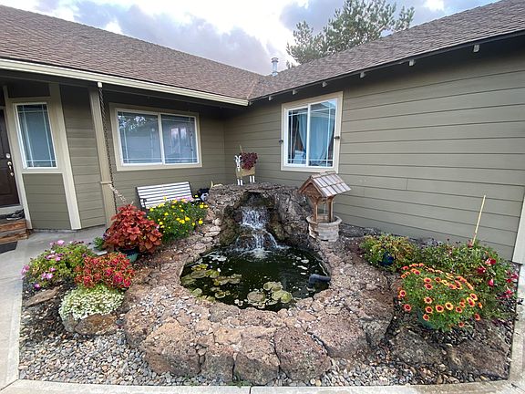 Stunning like new single level fully remodeled home w/hot tub in the very desirable Stonehedge on the Rim community in the heart of Redmond that features a private clubhouse & private fenced park area w/ huge pond, abundant wildlife, direct access to the paved dry canyon trail, located within minutes to all dry canyon community parks & all of Redmond's desirable amenities. This beautiful modern home features: immaculate landscaping w/water feature & pond, a functional open vaulted greatroom floorplan, custom painted cabinets w/quartz counters & tile backsplash, SS appliances, attractive hardwood/tiled/carpeted flooring, security system, Lrg bonus rm, primary has his/her walk-in closets, jetted tub & shower, double vanity, Great private backyard w/huge patio, raised garden beds, newer storage shed, & gates for additional parking. Home is located on a large corner lot in a cul-de-sac directly across from the Clubhouse/park access. Clubhouse is awesome for parties & can be used for free!