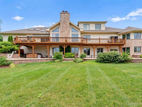 Stunning custom built hillside ranch with spectacular views and gorgeous sunsets! This home offers enormous room sizes throughout! Spacious stainless Kitchen with island, dbl oven and pantry is open to Great Room with 2 story fireplace and wet bar all with sliders opening to rear deck overlooking picturesque views! Master suite with sitting area, 19x7 ft walk-in closet, private Bath featuring 2 sinks, whirlpool, separate shower and sauna, plus sliders to balcony. 2nd floor has additional Bedroom with 1/2 Bath and Bonus room, currently used as craft/sewing room. Walk out Lower level with radiant heated flooring is the full size of the house. Family room with fireplace and sliders to huge paver patio with hot tub! There is also an Exercise room, full In-law suite complete with: 2 bedrooms, full 2nd Kitchen and Bath, plus sliders out to paver patio. 52x12 ft storage area. Volume and tray ceilings plus a multitude of windows and skylights bringing so much light into this special home! So many flexible work at home spaces. Zoned HVAC, New Roof 2016, new hot water heater 2017, New dbl oven & dishwasher 2016. Shed and garden box. Minutes to I90 and Barrington or Palatine train station. Excellent district 220 schools