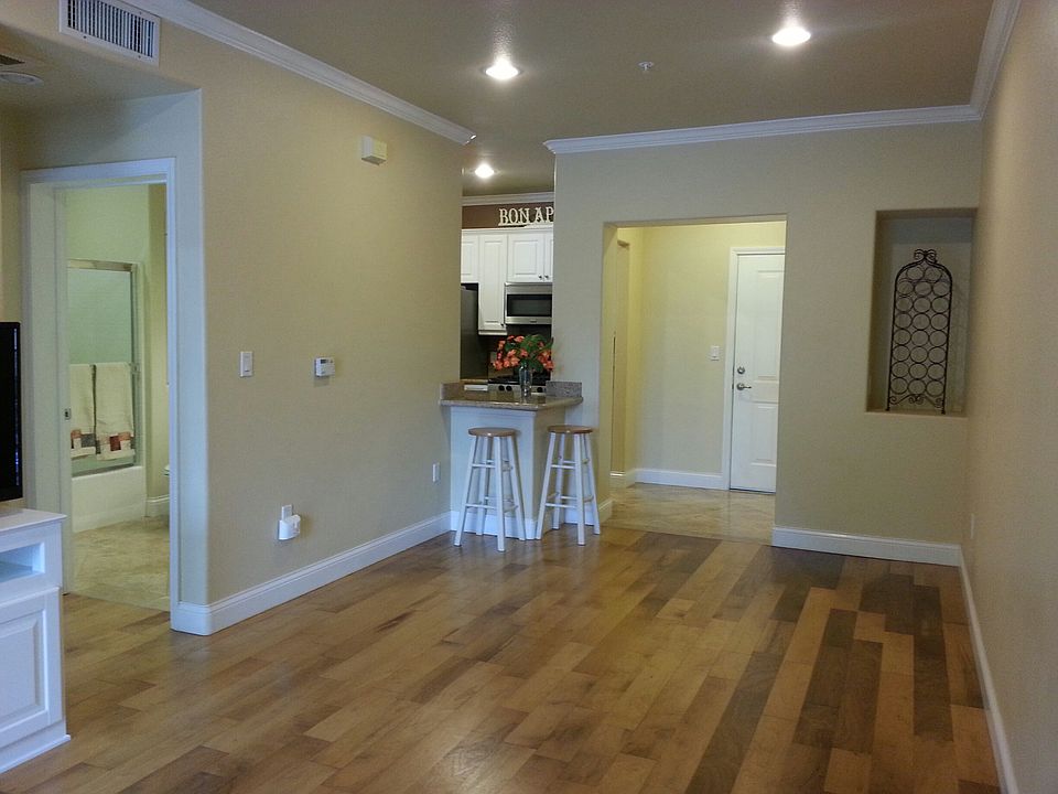Upscale gate community of Watermarke complex. near by Jamobree/Campus. Wood flooring throughout with gallery kitchen. Include washer/dryer and refrigerator. The unit at super quiet and easy to find location. State of Art amenities included club house and pool, gym etc. Available to move in after July 15 and also able to show on July 13 Thur 11am-1pm. Owner paid HOA due and trash. tenants pay Gas, water and electricity.