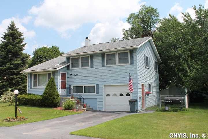 Vacant and waiting! New electric service panel, and new chimney for boiler. Big things come in small packages! Very well maintained tri-level with built in garage. Convenient to Fort Drum and city services. Home features some hardwood flooring that is in good condition. Three levels of living area above grade, and a basement that stores the mechanicals, but suitable for an exercise room etc. Yard is fenced in and is large and very private. Storage shed included. Many updates in the last 3-5 years. Great yard for entertainment. Nice interior color schemes.