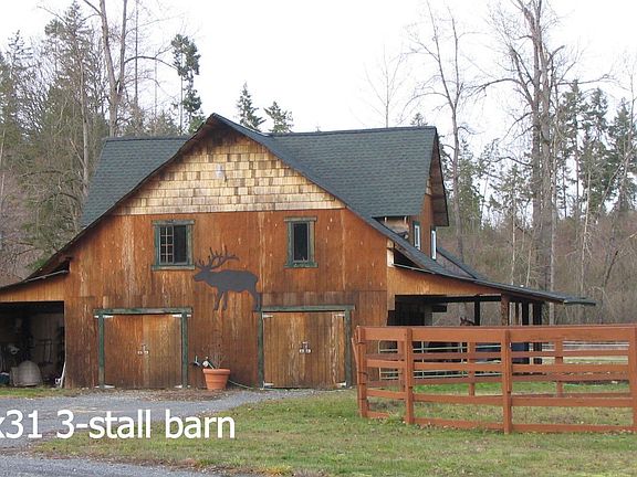 3bd, 3ba, 2336 sqft, Log & Cedar Home! 4-car garage & 3-story barn w/ stalls on 6+ acres w/ a Creek running through it! Main floor bedroom/den & full bath. Hand hewn log stairs. Wood stove. Slab granite counters & new stainless appliances. Wood plank & slate floors. Fenced & cross-fenced. $339950
