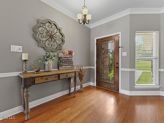 DREAM HOME ALERT in The Woods community! 4BD/2BA on a corner lot - approximately 3.3 acres. Brick floors, real wood floors, crown molding, and 9 ft ceilings with an open layout with both formal living/dining and additional living room with a fireplace. Kitchen has granite countertops, custom cabinetry, a large bar and stainless steel appliances (fridge not included), plus an adjacent laundry room with additional cabinets for storage. HUGE primary suite with a tray ceiling, massive walk-in closet, and spacious bathroom with a soaking tub with jets, large shower, and double vanity with makeup area. Additional bedrooms are generously sized with great closet space. Outside, enjoy your own backyard oasis with a covered patio and a saltwater gunite pool with tanning ledge and unique V-shape design, great for entertaining. Fantastic storage throughout.