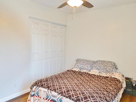 This 3 bedroom 2 bathroom home has newer exterior paint, dual pane vinyl windows, central heating and air conditioning and is all electric, which would make this home a great candidate for solar in the future. The home has an attached 1 car carport and also a detached 2 car shop in the back yard! There is plenty of room for parking in the over sized driveway too. The home has been nicely updated with vinyl plank flooring, with updated doors and baseboards too and the master bathroom shower has a new tile shower. The back yard is spacious with a great patio area outside of the master bedroom door. This affordable home is not one you'll want to miss.