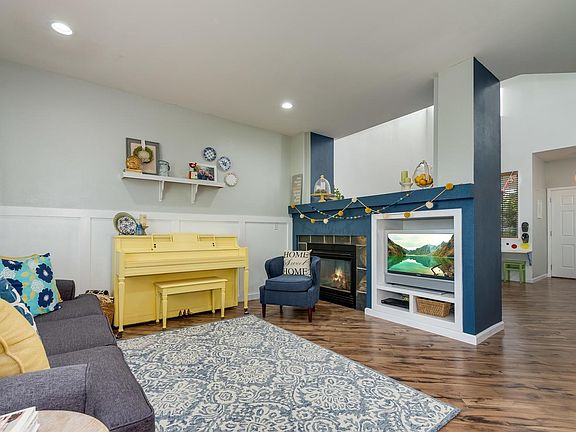 Motivated Sellers!!! Just Reduced! Charming, meticulously maintained 3 bed / 3 bath Two Story home in The Bluffs @ Saddle Rock. Adorably furnished home with new Pergo Max flooring (2017) on main level, Brand New Carpet throughout upper level (Sept 2018), Vaulted Ceiling, Dual Sided Fireplace in Living Room and Family Room, New Windows in Family Room and Kitchen (2017). Newly updated Kitchen with Pantry, Butcher Block Counter tops, Back splash, Recessed Lighting, Farmhouse Sink, Fridge, Microwave and Stove, as well as lovely upgraded light fixtures in kitchen and entry. Yard is just the right size, with cozy Fire Pit area for crisp Autumn evenings! Comes with an American Home Shield Warranty as well! This home is a GEM!