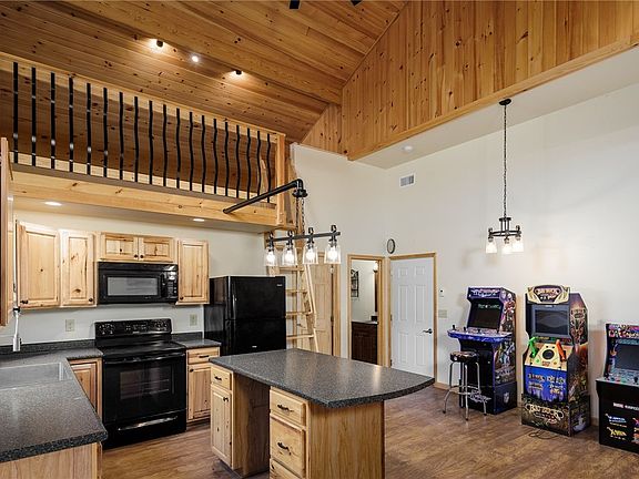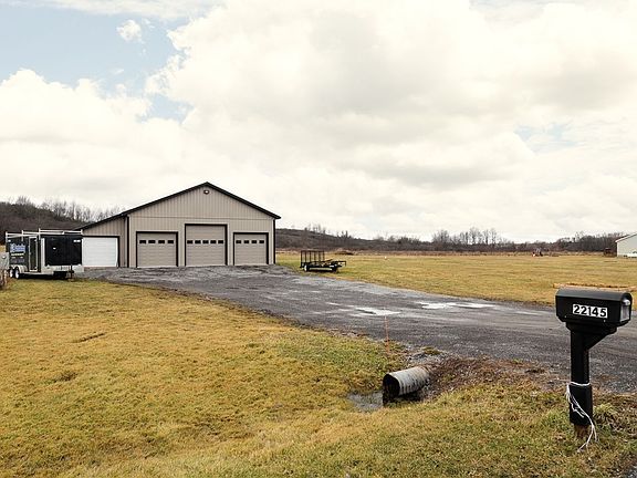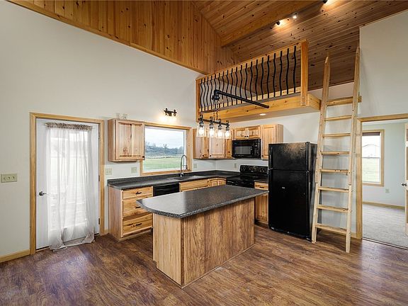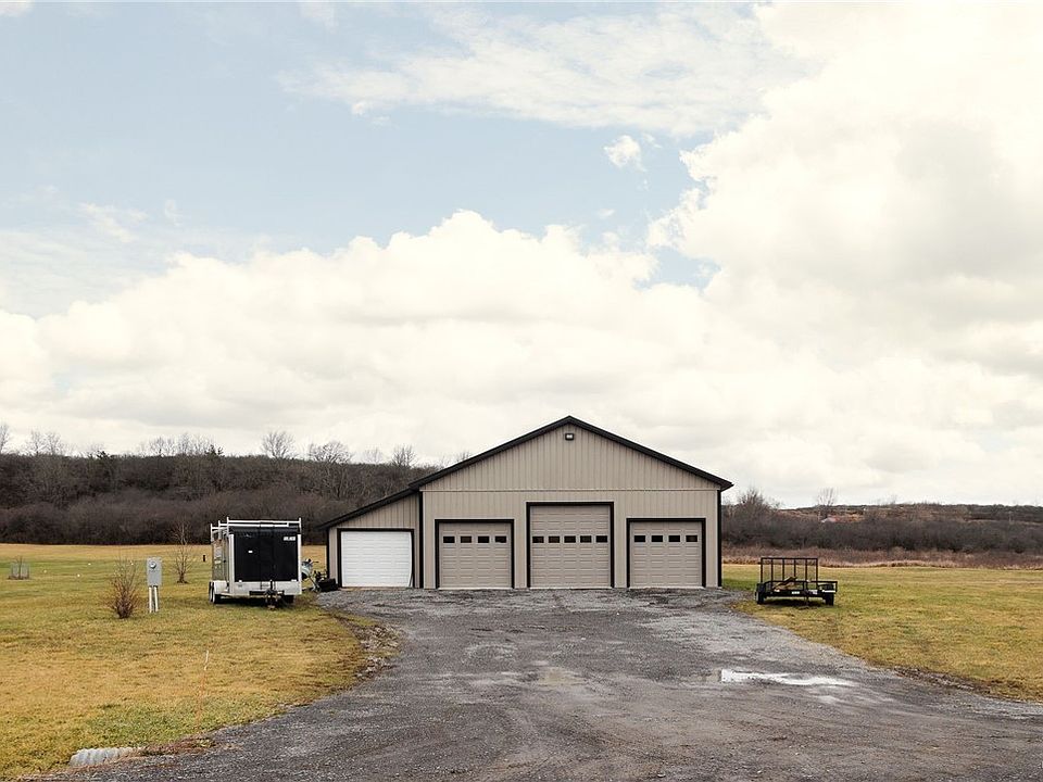 Check out this amazing and unique property! This one is very cool, with tons of garage space that could be used for almost anything you can imagine and the most amazing apartment attached to the back. There are 4 overhead doors that open into the the heated garage area and an unheated lean to off the left side. The apartment has huge vaulted ceilings lined with knotty pine, open concept area with kitchen and living room with 1 bedroom and bathroom as well as an additional loft area. It is absolutely charming. From the back patio enjoy the view of nature all around. Sitting on just over 5 acres, you have plenty of space to perhaps build another home, or have animals, subdivide or just enjoy!