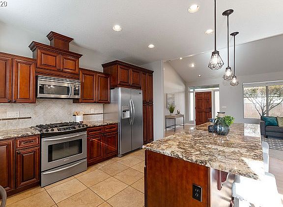 Your private oasis in Sherwood! This 1 Level home w/private driveway has an open, Great Rm floorplan with Vaulted ceilings and fireplace. The gourmet Kitchen has dark cabinets, 1-of-a-kind slab granite counters, SS appl and gas range. Lg Mastersuite w/His & Her walk-in closets~ Master Bath has granite counters, jetted Tub and Shower. New Ext & Int paint, along w/newer carpet. Green backyard w/new low water garden, planter beds and compost bin. Close to Activities~Langer Farms, Target & Eateries!