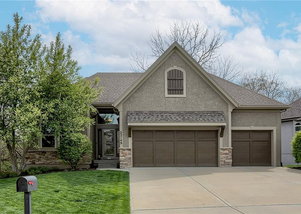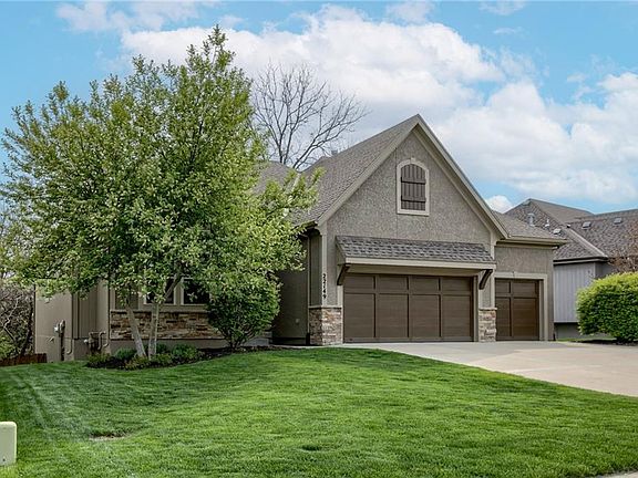 Dreamy new listing in Olathe is ready for you to call home! Open layout and high ceilings! Inviting Great Room features beautiful hardwood floors, fireplace, and stunning view through the floor to ceiling windows of the serene woods behind the home! Gourmet Kitchen with granite counters, kitchen island, walk in pantry and dining area! Big deck is perfect for outdoor entertaining and looks out to the mature trees and fenced in backyard! All 3 lovely bedrooms on the main floor have an attached full bathroom! Convenient laundry room on main floor. New High Efficiency HVAC system and new exterior paint! Huge, unfinished walkout basement has so much storage room, built in cabinets and safe. Walkout to a covered patio and backyard! Big, 3 car garage and convenient mudroom with built ins when entering home through garage! Gigabit internet with key rooms wired for Cat 6 makes it easy to work from home, game, or stream in 4k. Perfect location close to shopping, dining and highway! Move in and make it yours!