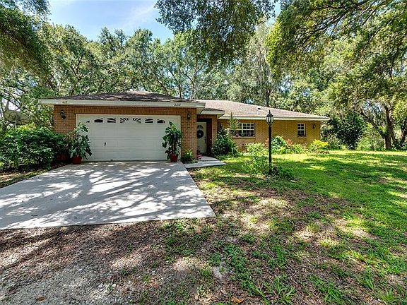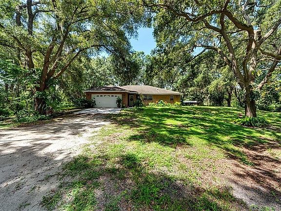 Imagine living in your own picturesque slice of the countryside, secluded for privacy and acres of land to roam. This lovely three bedroom, two bath home is located on 3.86 acres of land, and also has three 12x12 horse stalls and a tack room for the equestrian enthusiast. This property is like a picture out of a storybook, as you travel the long drive up where the home appears in the clearing. With the brick elevation and lamp post in the yard, the home immediately gives a cozy feel. As you enter the home, you are immediately greeted by the main living room with a warm wood-burning fireplace, skylight to allow plenty of natural light to brighten the room, and vaulted ceilings. The formal dining room is located just off the living area and overlooks the main living area. Cook family meals in the charming kitchen, featuring a built-in eat-in table, and cabinet space to spare! Retreat to the master's oasis with a wide window and tray ceiling. The master bathroom has his and hers shell-shaped sinks and a glass-enclosed shower. The second and third bedrooms both have wide windows and ceiling fans for comfort. You will fall in love with the architectural features built into the home, including built-in shelving and high ledges for a variety of home decor options! Enjoy the Florida weather from your fully screened-in back patio that overlooks the property and stables. Located just minutes from shopping, dining, and beaches! Experience tranquility and charm at its finest- make it yours today!