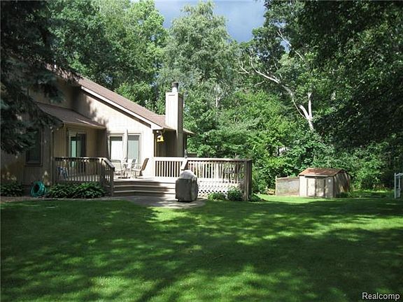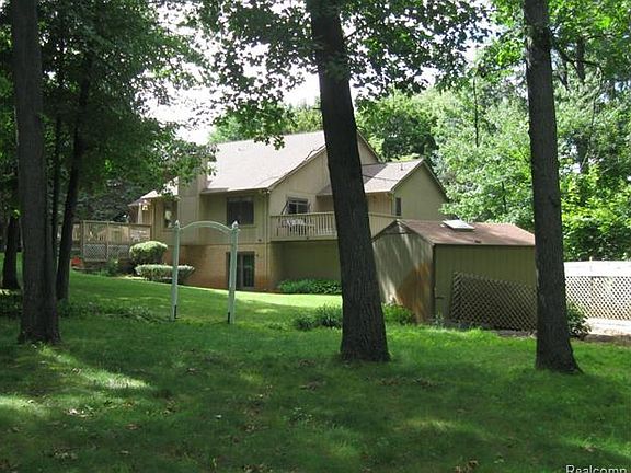 Quietly nestled in the trees with pond frontage is the quality home with many amenities. Expansive great room with studio ceilings, recess lighting and beautiful wooded views of the private back yard. Great kitchen with lots of cabinets and counter space. Formal dining area has a door wall to one of two back yard decks. Ceramic tile foyer entry way with hardwood floors through kitchen, dining room, first floor laundry and hallways. The first floor master suite includes a beautifully remodeled bathroom with tile flooring and shower surround. Walk in closet is nicely organized. Private first floor office or den with French door entry. Loft style upper level has an airy and open feeling. Three large bedrooms with ceiling fans and plenty of closet and storage space. The finished lower level gives you plenty of room to roam. Nice family room area with the door wall to outside. Exercise room and separate craft room with wet bar area. Full bath complete with tile floors.