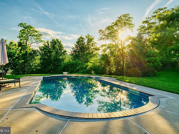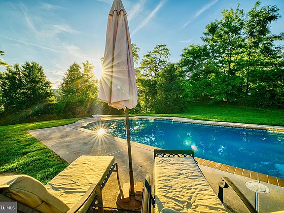 WHAT A VIEW!! MAIN LEVEL LIVING! A rare find - Main level Primary Bedroom AND a spectacular, private backyard where you can watch the sun set behind the mountain each night while lounging in your heated in-ground pool! Nestled on a quiet cul-de-sac this exquisite 2013 home has over 4,000 sq ft of thoughtfully designed living space, featuring 3 spacious bedrooms on the main level with two full baths and a huge room in lower level with wall to wall closet ideal for guest space with a full bath in the lower level as well. Mounted flatscreen TVs are included in the sale! Step inside to discover rich hardwood floors that flow seamlessly throughout the main level with extra high ceilings, leading to a gourmet kitchen equipped with gas cooking, granite countertops/bar, stainless appliances, and a vaulted ceiling sunroom overlooking the beautiful backyard. The Kitchen opens to the family room highlighted by a stunning floor to ceiling stone gas fireplace. The main level primary suite is a true retreat, featuring an en-suite bath with soaking tub, shower, and separate toilet, generous walk-in closet and large sitting room/home office with the sunset view. Additional interior highlights include a convenient main floor laundry, and a sprinkler system for peace of mind. Outside, the property sits on a premium almost half acre lot, beautifully landscaped with Pear, Apple, Fig & Cherry trees that adjoins a forest conservation area/easement for added privacy. Enjoy summer days by the heated in-ground pool in the fully-fenced back yard. A charming front patio is perfect for morning coffee. Experience the perfect blend of luxury main-level living and serene outdoor spaces in this stunning residence. Located in Frederick, minutes to Downtown with the Carroll Creek Promenade lined with boutique shops and restaurants, Baker Park with miles of walking trails, the Monocacy River is nearby for kayaking, and endless community entertainment and events. Close to the best food stores in the area, shopping & restaurants! Cannon Bluff Neighborhood has walking trails and playgrounds.