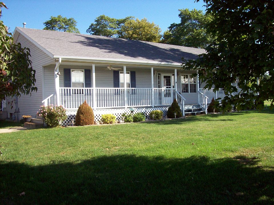 Framed open concept split bedroom ranch on full/partially finished poured concrete basement near Eagle Creek State Park/Lake Shelbyville