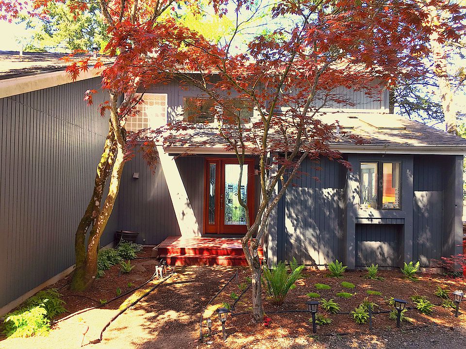 Accepted Offer with Contingencies. This home is in a wonderful location on nearly a half acre with sweeping views of the cascades. Enjoy the view from the two level wood deck or from inside the living room with huge windows. The tall ceilings and the 20ft high river rock fireplace give this home a luxurious feel. Remodeled kitchen with gas range and quartz counter-tops. Separate bonus room. The master suite has a bathroom with dual vanities and an over-sized tub and walk in closet. Extra storage space in the partially finished basement.