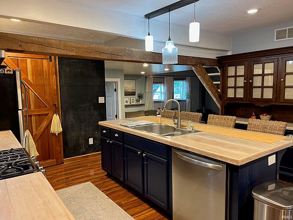 Rare Find - UNIQUE Barn Style Home! Still having the exterior appearance of a Barn but step inside to WOW. Located in the City with a little bit of Country on this .69 Acre property, private driveway with a Fantastic new Treehouse, Deck with Pergola, shared Pavilion and Fire Pit to enjoy the beautiful sunsets. This Spacious Open Concept Home has 3 Levels -- Main Floor Level offers Kitchen, Breakfast Bar, Great Room w/ tall ceiling, Wood Stove, 2 Bedrooms, Dining Room, Pellet Stove, Laundry, Walk In Pantry behind the Barn Door, 1/2 Bath & Full Bath with Jetted Tub plus Appliances all stay. The Upper Level consists of the Master Bedroom/Loft that is a Must See and new Den/Office/Craft room. Lower Level is 2184 Sq Ft of space consisting of 3+ Car Garage, Service Doors and 3 Overhead Doors with 2 at 10ft Height. Workshop & Benches, Recently finished Mud Room with new window, Storage is plentiful, 1/2 Bath with room to complete to a full bath, area for a Kitchen to be put in, Pet Door, Mud Room/Laundry Hookup plus an additional room that could be another Bedroom w/ separate entrance. Numerous updates: Main Floor Lighting & Ceiling Fans, New Hood Vent, Added Den/Office in Upper Level, Added Laundry on Main Level, Shingled Roof replaced, Mud Room added, Dishwasher added, Kitchen & Bathroom updates to just name a few. The options are Endless on this Home. Could be a great Investment property with finishing the Lower Level for a Guest Suite, Apartment, etc. This property is a MUST SEE!