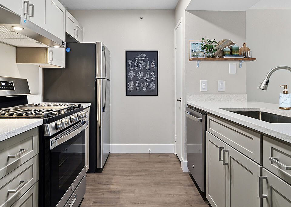 - Exterior features: 9-foot ceilings, Dual vanity sinks*, Easy access to 91 and 15 freeways, Granite countertops *, Oversized closet*, Package Receiving, Pet Park, Wood-style flooring, Wood-style plank flooring*