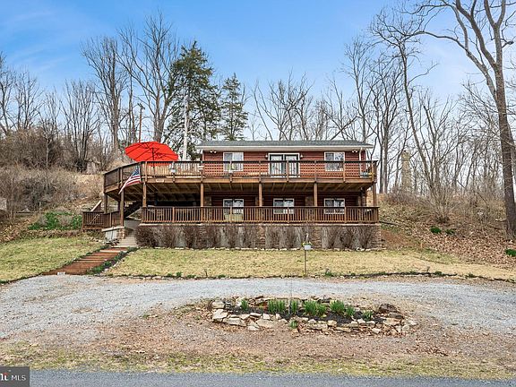 Welcome to 2215 Lockes Mill Road, a stunning log-sided home offering breathtaking views and direct access to the Shenandoah River. Nestled near historic Lockes Mill, Watermelon Park, and a public boat landing, this property is perfect for weekend getaways, year-round living, or a prime investment opportunity as a short-term rental. Situated on a .43-acre lot with 64 feet of private river frontage, this beautifully remodeled home combines rustic charm with modern comforts. The inviting living room features a striking stone wall and a fireplace with a wood-stove insert, circulating fan, and Forever Flex chimney lining, creating a warm and cozy atmosphere. The home boasts two levels of extensive decking, providing the perfect space for entertaining or simply enjoying the tranquil river views. Inside, the home showcases royal mahogany laminate and tile flooring, wood doors, and custom trim throughout. The kitchen is elegantly designed with tile walls and a backsplash, while a circular staircase adds character and charm. The spacious bathroom includes a 6x6 tiled shower, offering a spa-like experience. This home is equipped for all seasons with two Carrier wall units providing efficient heating and air conditioning, as well as baseboard electric heat on the lower level. A fully floored attic provides additional storage space, and a well house at the top of the lot doubles as a storage shed. This riverfront property offers endless possibilities. Whether you're looking for a serene primary residence, a weekend escape, or a high-demand Airbnb, this home delivers a rare opportunity to own a piece of waterfront paradise.