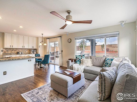 In highly sought-after Vista Ridge in Erie, this house is the one! It is move-in ready, it has it all and then some! The home is a 3BR/3B with amazing yard on a quiet cul-de-sac, all appliances (recently replaced), new carpet, new paint, washer/dryer, extra refrigerator in garage, wine refrigerator (one in the fully finished basement with wet bar), new driveway, backyard that is ready for summer nights and year-round use with its covered trex patio, built-in barbecue, and inset hot tub (new with warranty)! The home has vaulted ceilings in the living and dining rooms and a beautiful eat-in kitchen great room area with gas fireplace. The main floor white oak floors were just refinished as well. Upstairs, the primary suite has a 5-piece bath with soaking tub, large walk-in closet with built-in custom shelving system, and there are new black-out blinds in every bedroom (you'll sleep like a dream-- that is, when you're not soaking in the views)! Wander down to the basement and find a getaway, perfect for the gamer or music-lover, or...pick your passion! There are built-in shelves, cabinets, and another gas fireplace, a wet bar with sink and fridge, and it is large enough for many layouts. Oh, and there is a bonus area for guests, homeschooling, playroom, craft area,... so many options! Two storage areas are down there too-- one is currently set up as a workout room! The house and covered patio are both wired for sound, speakers included (just needs your favorite receiver.) Bonus: this home has a SMART thermostat with temperature sensors in each room and a SMART sprinkler system! The home has been immaculately cared for, updated, and it's move-in ready! Vista Ridge has two community pools, including a kids' pool with water slides, clubhouse, trails, parks, neighborhood elementary school, Colorado National Golf Course, restaurants, and shopping, just to name a few... all within minutes of I-25! Come see it for yourself today; we believe you'll love it too.