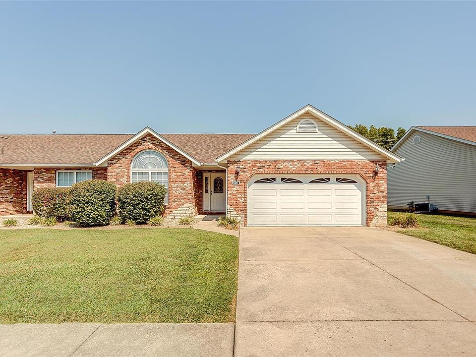 Discover the charm of this beautifully designed two-bedroom, two-bath villa, perfectly situated near Scott AFB, shopping, and easy access to the interstate. The vaulted ceiling in the great room enhances the sense of openness, complemented by a cozy gas fireplace. The well-equipped kitchen boasts a range, refrigerator, microwave, and dishwasher, making meal preparation a breeze. Off the dining area, a door leads to the deck and backyard, perfect for outdoor relaxation. The primary suite offers a peaceful retreat with its own vaulted ceiling, a generous walk-in closet, and an en-suite bath featuring a step-in shower. The villa also includes a convenient laundry room with additional storage space. Additional highlights include a two-car garage and a prime location that blends convenience with comfort. New roof 2024, water heater replaced 2023. This villa is the perfect place to call home!