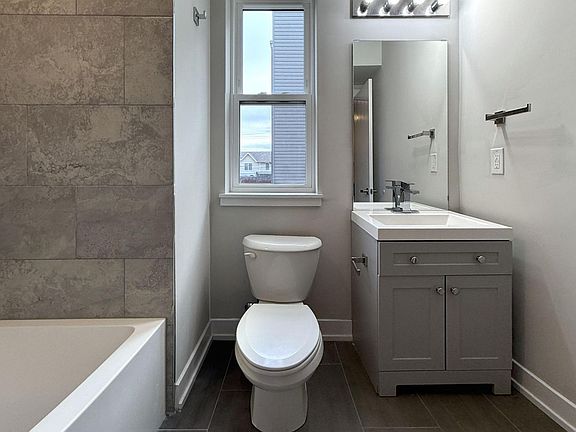 Throughout the apartment, durable wood-look flooring adds warmth and continuity. The two bedrooms offer privacy and are well-lit with large windows. Both bathrooms showcase modern vanities, large mirrors, and combination tub-showers with stylish tile work. Recessed lighting throughout the unit ensures a bright, welcoming atmosphere, making this apartment an ideal and stylish urban dwelling.